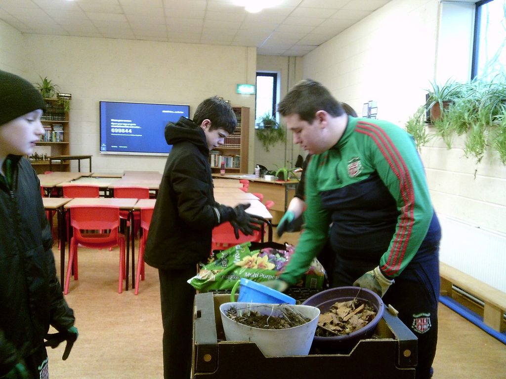 The Solas ‘Grow, Cook. Eat class were busy planting seeds for the coming growing season indoors over the past few days. They gathered the seeds on-site from plants already growing around the school. They used a mixture of leaf-mulch gathered in the autumn, along with paper to line the pots and a little bit of compost bought from Return bottles collected. These will be planted out in the school’s polytunnel after St. Patrick’s Day