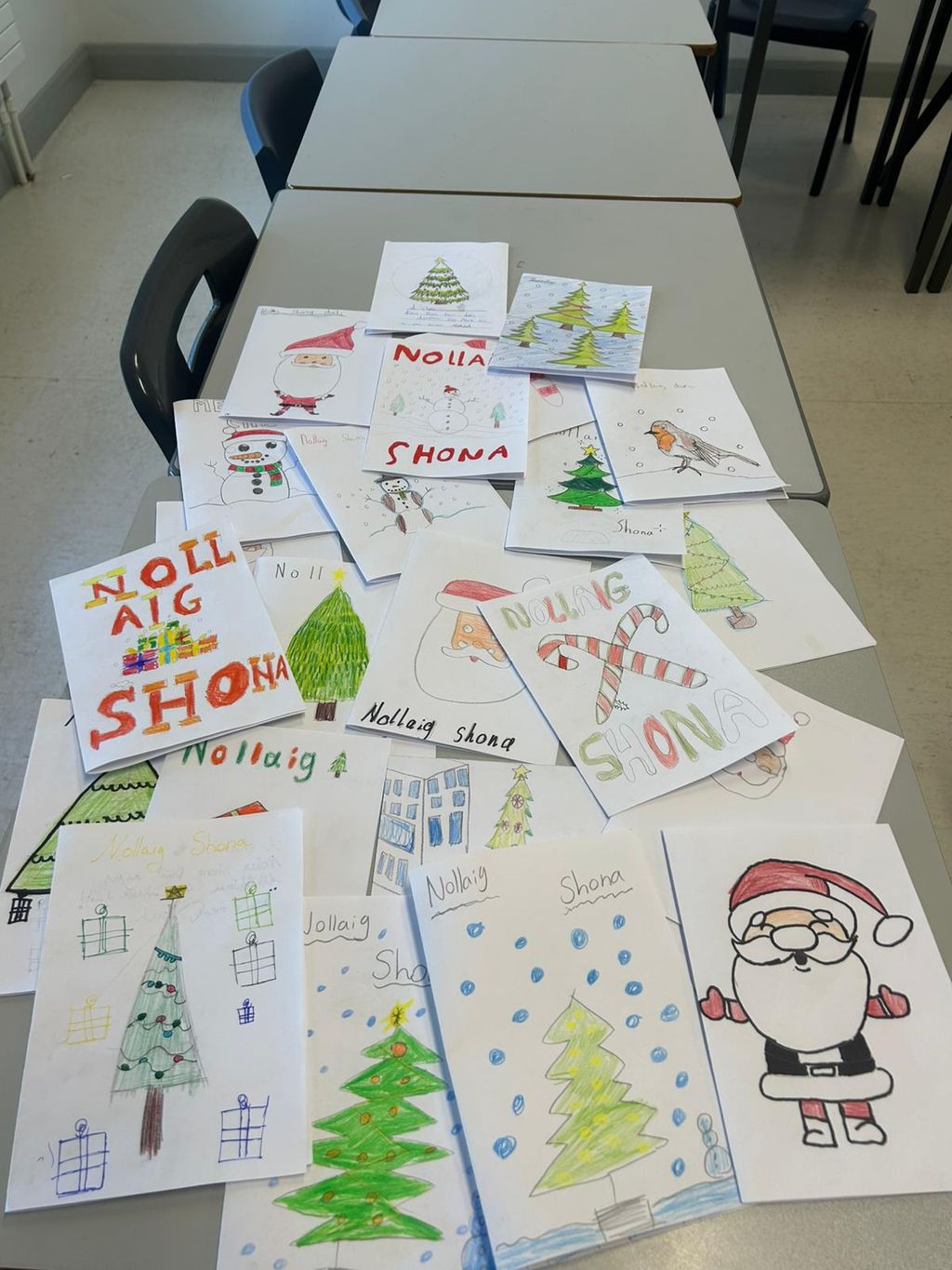 Ms. Sheehan’s 1st Year Gaeilge and 2nd Year CSPE classes have been busy getting into the Christmas spirit by creating heartfelt Christmas cards for residents in nursing homes both locally and across the country with the Gaeilge class sending their cards to nursing homes in the Gaeltacht in Galway!