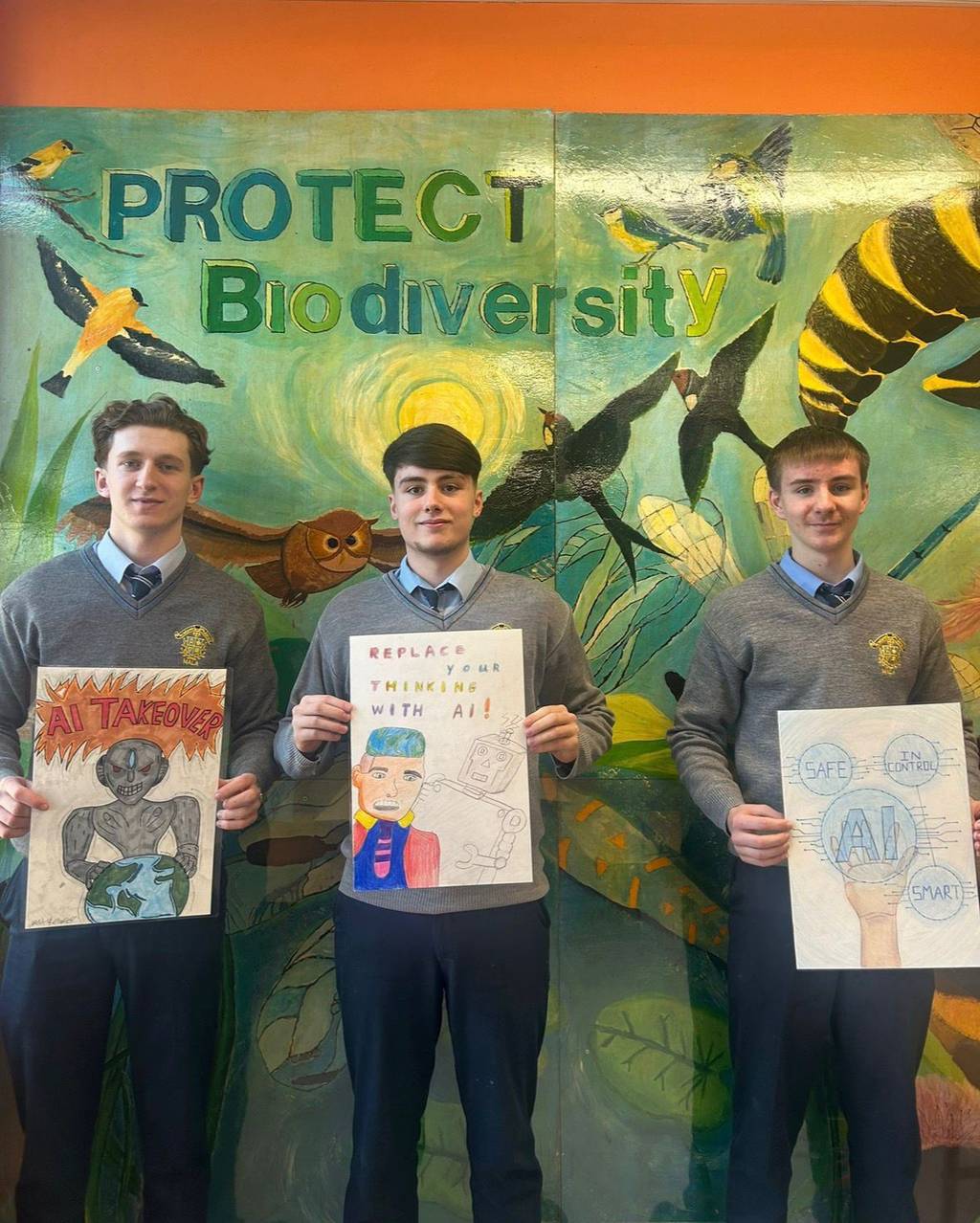 Congratulations to the fantastic winners of our recent Safer Internet Day Poster competition from our 1st Year and LCA Art classes. The themes of this year’s campaign was “AI Aware: Safe Smart and In Control.” Thanks to Mr. O’Shea and Mr. Stokes for facilitating, and to the Safer Internet Day team for promoting this important event across the school community.